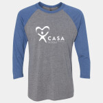 Feel like a winner in this comfortable tee. 4.6-ounce (155 GSM) 60/40 combed ring spun cotton/polyester, 32 singles Tear-away label Crossover V-neck Back neck tape Distressed printed stripes at sleeve