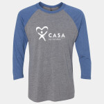 Feel like a winner in this comfortable tee. 4.6-ounce (155 GSM) 60/40 combed ring spun cotton/polyester, 32 singles Tear-away label Crossover V-neck Back neck tape Distressed printed stripes at sleeve
